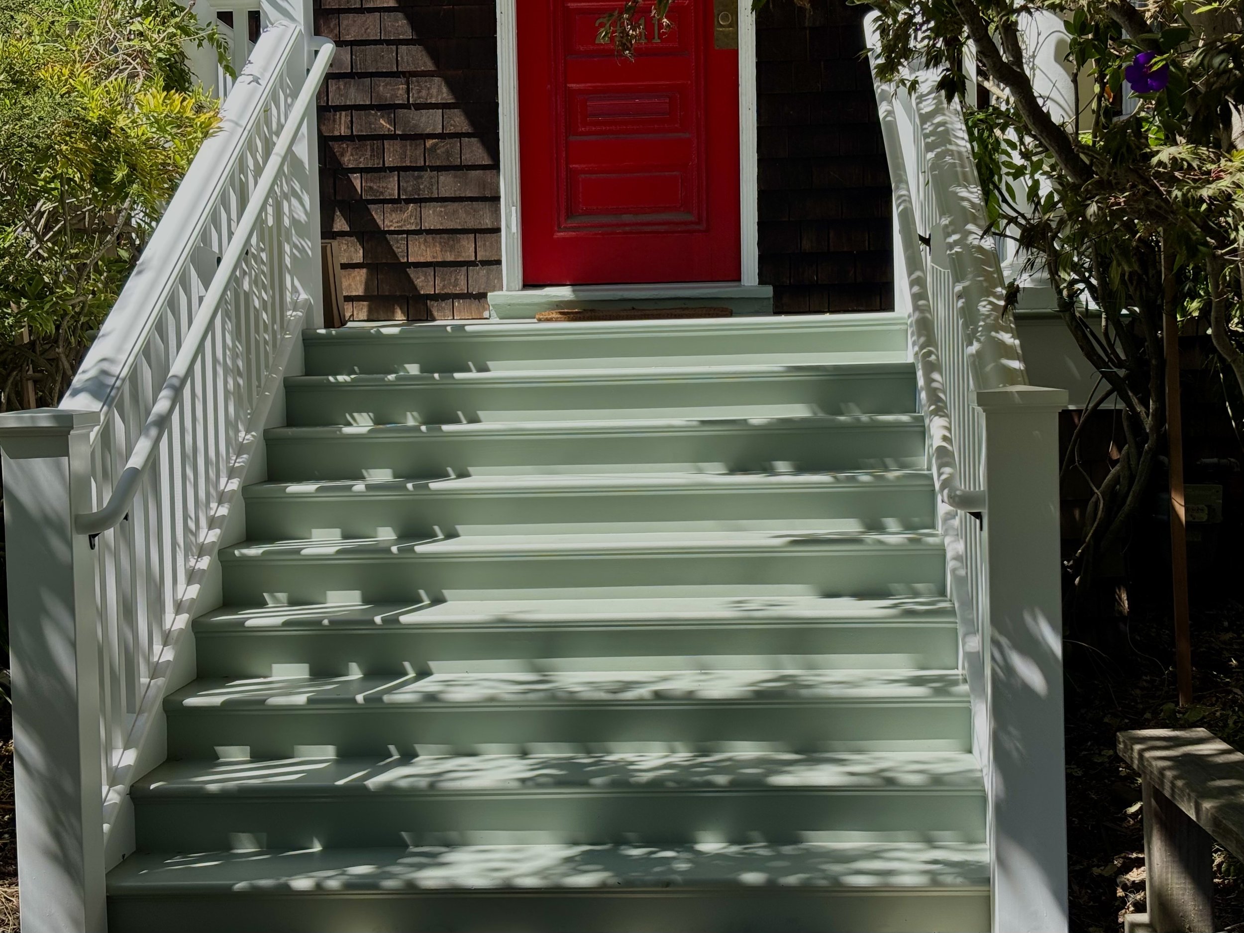 Mint green stairs and railing built in shop